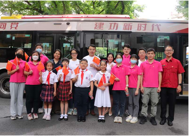 当车辆到达中共三大会址纪念馆,乘客们齐步走到纪念馆线下“红讲台”。在这里,参加活动的党、团员和少先队员还开展了一场生动的红色文化沙龙。