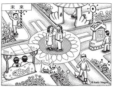 封面漫画作者:安迪∙辛格(Andy Singer),美国漫画家,作品主题聚焦自行车、交通运输以及土地使用等话题。本幅漫画作品已授权在"2014年中国城市无车日活动"中使用,助力绿色出行科普。