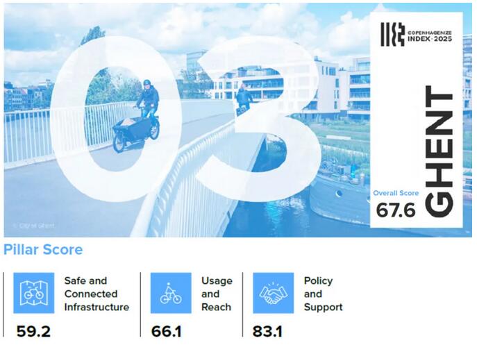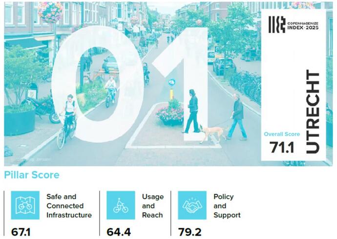 表现最好的城市:乌得勒支、哥本哈根和阿姆斯特丹依然位居前列,根特首次加入顶尖阵营。