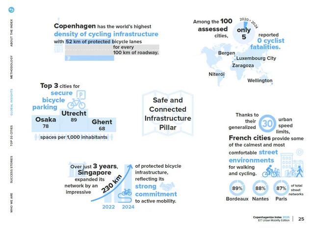 独一无二的《哥本哈根指数2025》,揭示了全球100个城市正在通过街道改造,将骑行作为主要出行解决方案。
