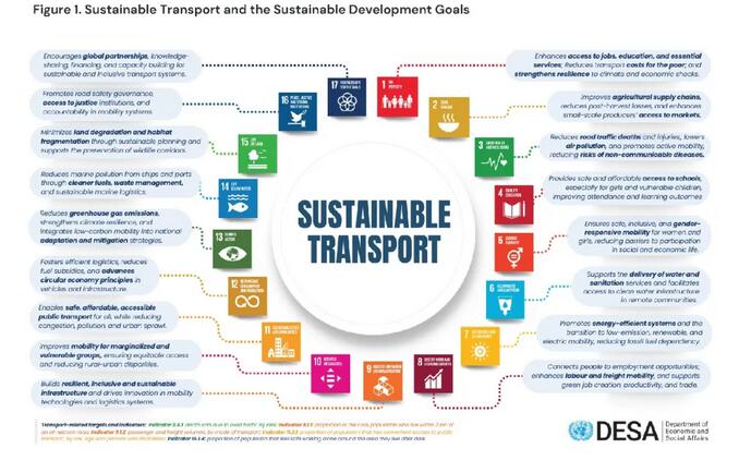 2023年,联合国大会宣布设立首个联合国可持续交通10年,自2026年启动。虽然没有单一的可持续发展目标专门针对交通,但该领域已经被纳入多个目标中,并被广泛认为是实现其他许多目标的关键推动力。交通实际上与基础设施韧性、经济增长、贸易、能源效率以及应对气候变化等问题密切相关。