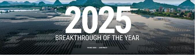 1. 《科学》杂志评出2025年度十大突破,中国引领全球可再生能源发展居榜首