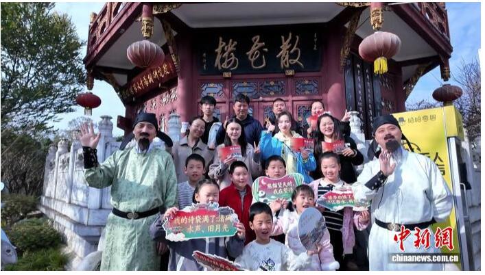 “诗词之路”观光专线是成都一条周末及节假日运营的文化主题巴士线路,串联起杜甫草堂、青羊宫、散花楼、合江亭等景点,行至一些停靠站点,游客们可以在公交司机的带领下一同前往打卡、合影。记者在现场看到,公交车的车厢和车身满是古风韵味,行车过程中“李白”就会和乘客进行诗词互动,飞花令、诗句接龙等小游戏深得孩子们喜爱。