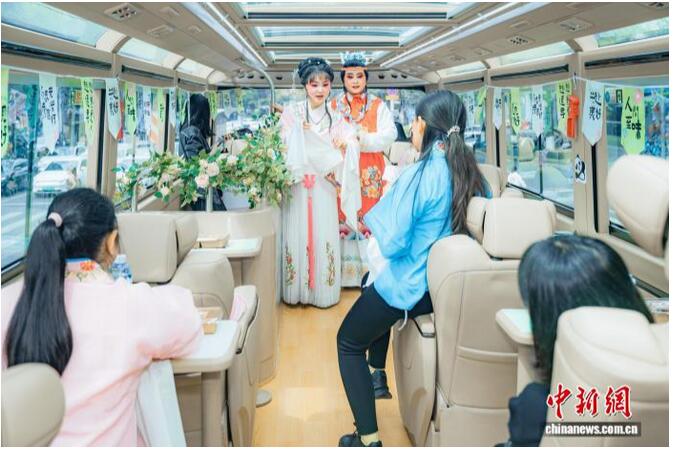 1日,2026年成都春假首日,成都公交打造的“春遇蓉城·越剧之路——趣耍巴士茶歇巴士上的家庭越剧研学活动”启幕。本次活动以趣耍巴士茶歇巴士为载体,将其化身“移动越剧研学驿站”,聚焦春假亲子出行需求与传统文化传承,串联春熙路、太古里、宽窄巷子等成都核心地标,为9组亲子家庭打造了集赏戏、研学、互动于一体的沉浸式越剧主题体验。90分钟的旅程里,戏韵温情与蓉城春日盛景相映成趣,让青少年沉浸式感受到越剧艺术的独特魅力。