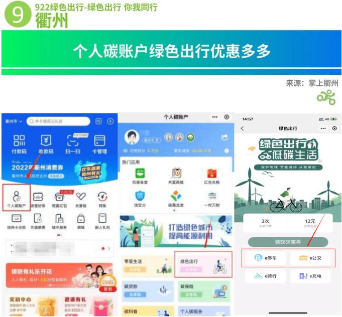 衢州市个人碳账户是为助力双碳目标而试点建设,用以记载居民日常生活中低碳行为减排成果的载体。为了让居民个人更好地体验个人碳账户,人民银行衢州市中心支行、市交通运输局、市交投集团、市城投集团联合在市本级推出绿色出行优惠活动,公交低至1分钱、路边停车5折优惠。活动截止至2022年12月31日,活动对象为绑定62标准银联卡的“云闪付”APP用户和申请个人碳账户的用户。(具体优惠政策明细以衢州市个人碳账户通告为准)